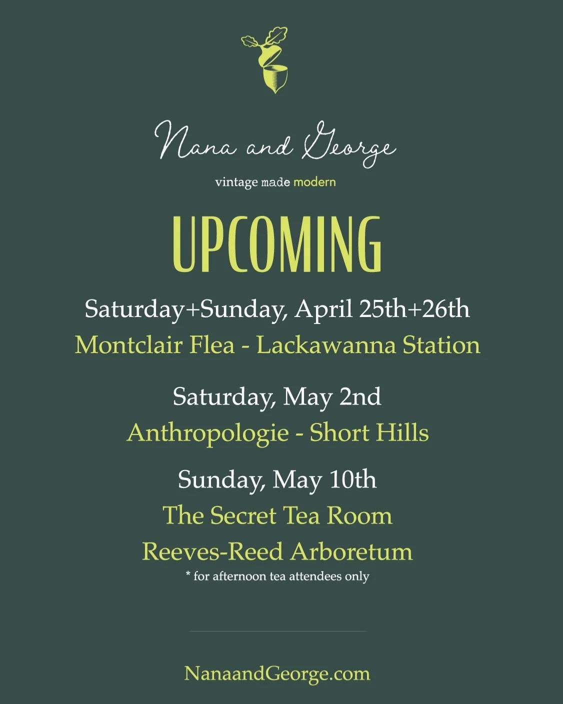 Giving pieces of the past a new place in the present. Birds of a feather. Vintage means different things to different people. While purist with many things, we believe that preservation is often best served through respectful evolution. You are most welcome to follow the journey of Nana and George here - vintage made modern at it's finest. First Name Last Name Email Address Sign Up Thank You!
